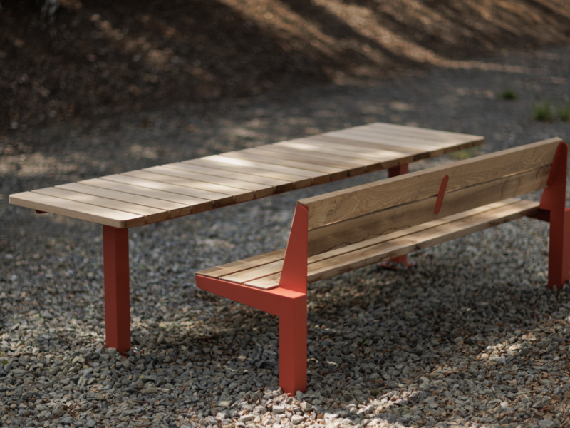 De Alto zitbanken worden gekenmerkt door strakke lijnen en een stevig stalen onderstel. In combinatie met een zit- en rug vlak uit warm tropisch hardhout ontstaat er een uitnodigende balans tussen robuust en verfijnd.
